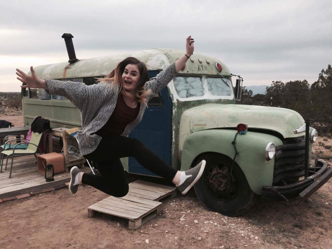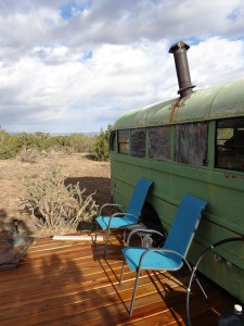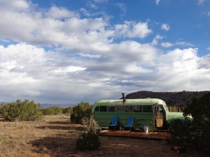 This is a 1948 school bus that became my home for years, and is now set in a uniquely beautiful area of New Mexico. You will be staying in the bus as your own private space. You can sit on the deck and enjoy the sunset, or cook up some hot food on the two-ring burner inside the bus and spend a quiet evening reading. Or you can drop your stuff and head across the field and down into the valley to the west. Explore safely, bring water, boots and a flashlight. The bus is cleaned thoroughly but it’s dusty here so it’s not a good fit for the clean-freaks.