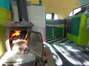 The bus comes with a wood stove for heat, a propane fire pit outside and a charcoal grill outside. There is a container of water for washing, a cooler, cooking supplies, a propane two-ring burner, coffee and teas. Pretty much everything you need but for food and drinking water. Outhouse, compost toilet style, and no running water or electricity. Candles and an oil lamp. Sound good?
