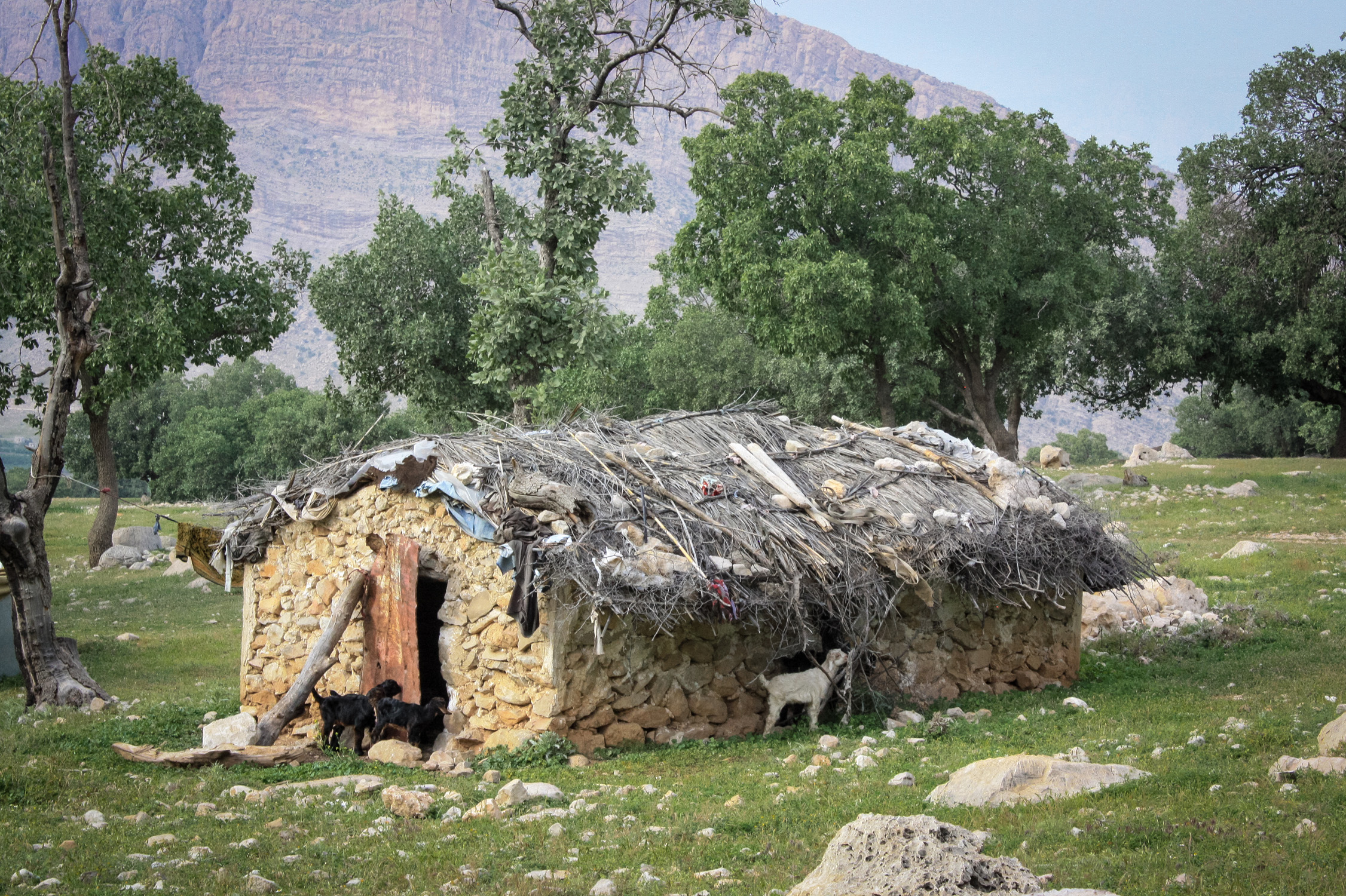 We drove for several hours, over a high mountain pass, deep into the Zagros mountain range. When we pulled into the seasonal nomad settlement, I was surprised there were in fact no tents, for the Qashqai were known as the “black tent nomads.” They are renowned for the exquisite wool Persian carpets they weave. I wondered which of the thatch-roofed stone huts clustered loosely together we would stay in.