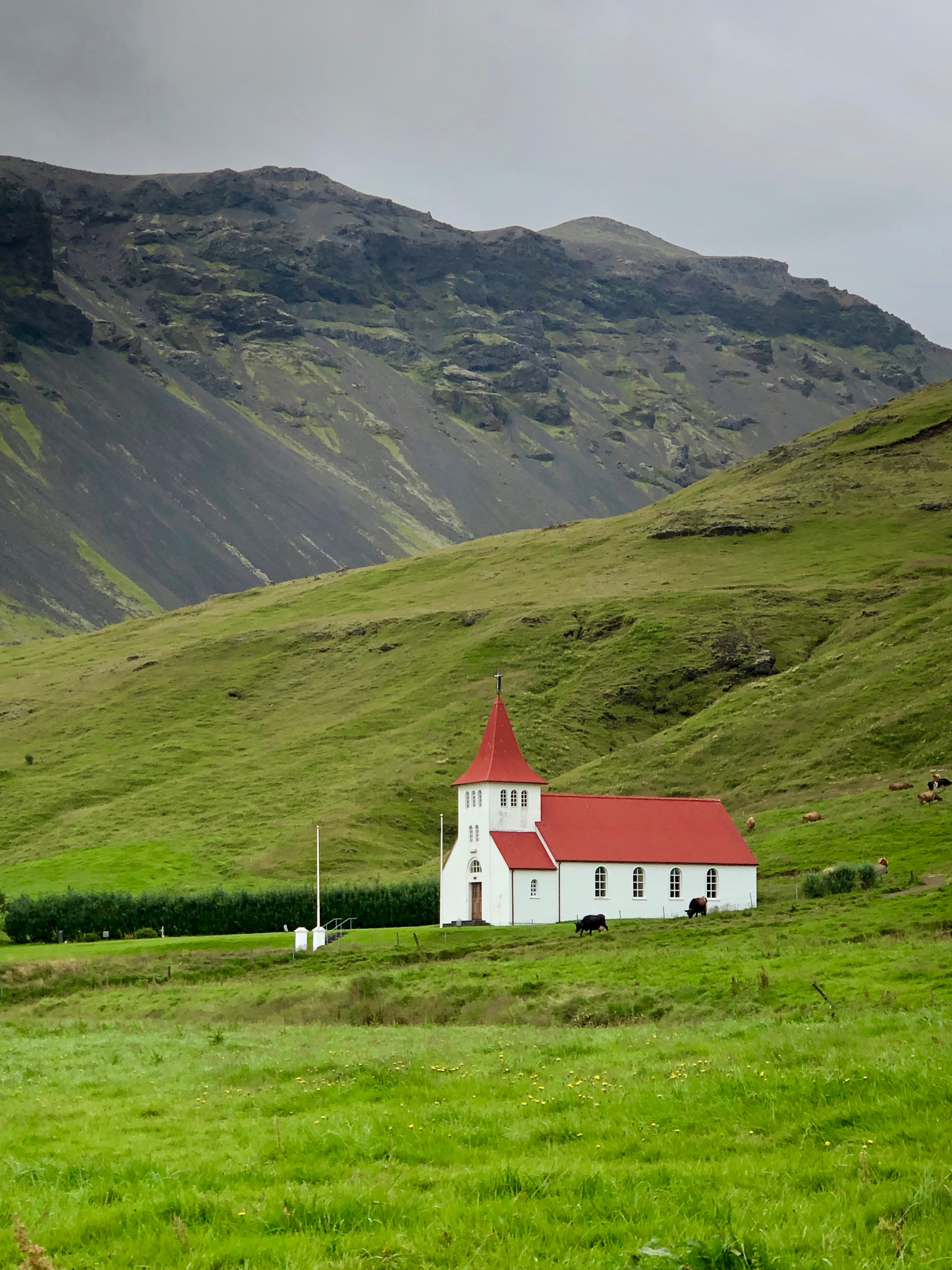 Essay: The farmer invites us for a tour of the small church a short walk from his farmhouse. It’s a remnant of colonial days when Iceland was under the rule of Denmark, their attempt to turn pagans into Christians. We are guests staying in the manor house on his farm in the southern part of the island, here to ride the famous Icelandic horses. This farm, we are told, is the closest property to the Eyjafjallajökull Volcano that erupted almost twenty years ago, spewing plumes of ash into the sky that wreaked havoc all over the world, yet this family of farmers has chosen to live here for seven generations. The church is actually more like a chapel, with its plain boxy architecture and simple steeple topped off with a cross lit up with white light bulbs. It’s perched on a gently rolling hill near the tree lined cemetery, painted white with a red roof, as almost all the buildings in this small country are.