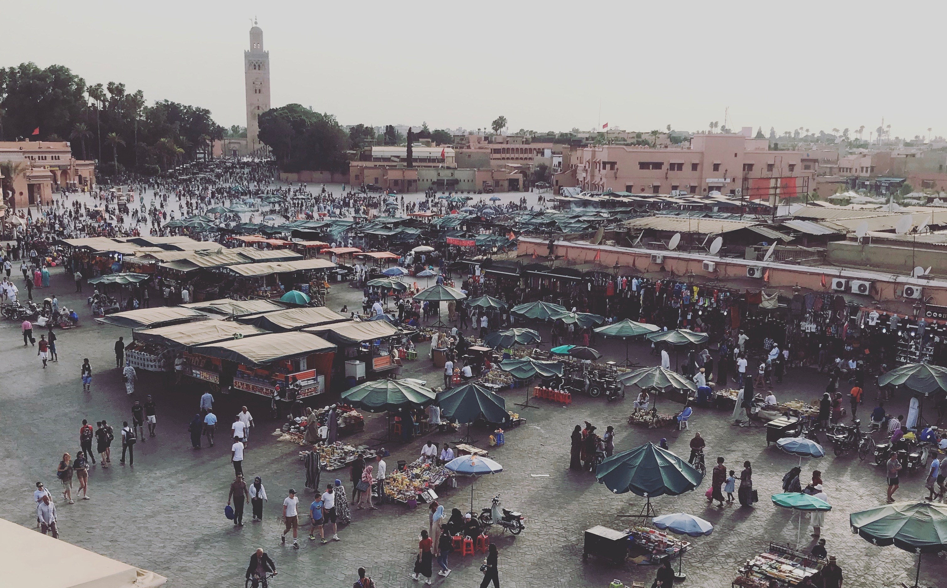 The day before, I’d been having an early dinner on the balcony of one of the restaurants overlooking the square in the Medina of Marrakech (the old town). I was seated at a small table filled with more food than one person could possibly eat. The restaurant hosts never tried to hide their genial marveling at my overzealous ordering anymore than they hid their less-than-mild surprise when I asked for a table for one. But that evening I was not the only woman dining alone. At the table adjacent to mine, another woman sat with guidebooks and maps open in front of her bearing pencil marks and sticky notes. A quick once-over glance and we could instantly tell we were both Americans.