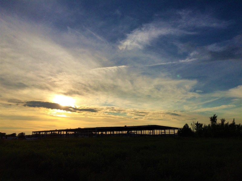 View on a July evening of a new building in an industrial area. Kingston, Ontario.