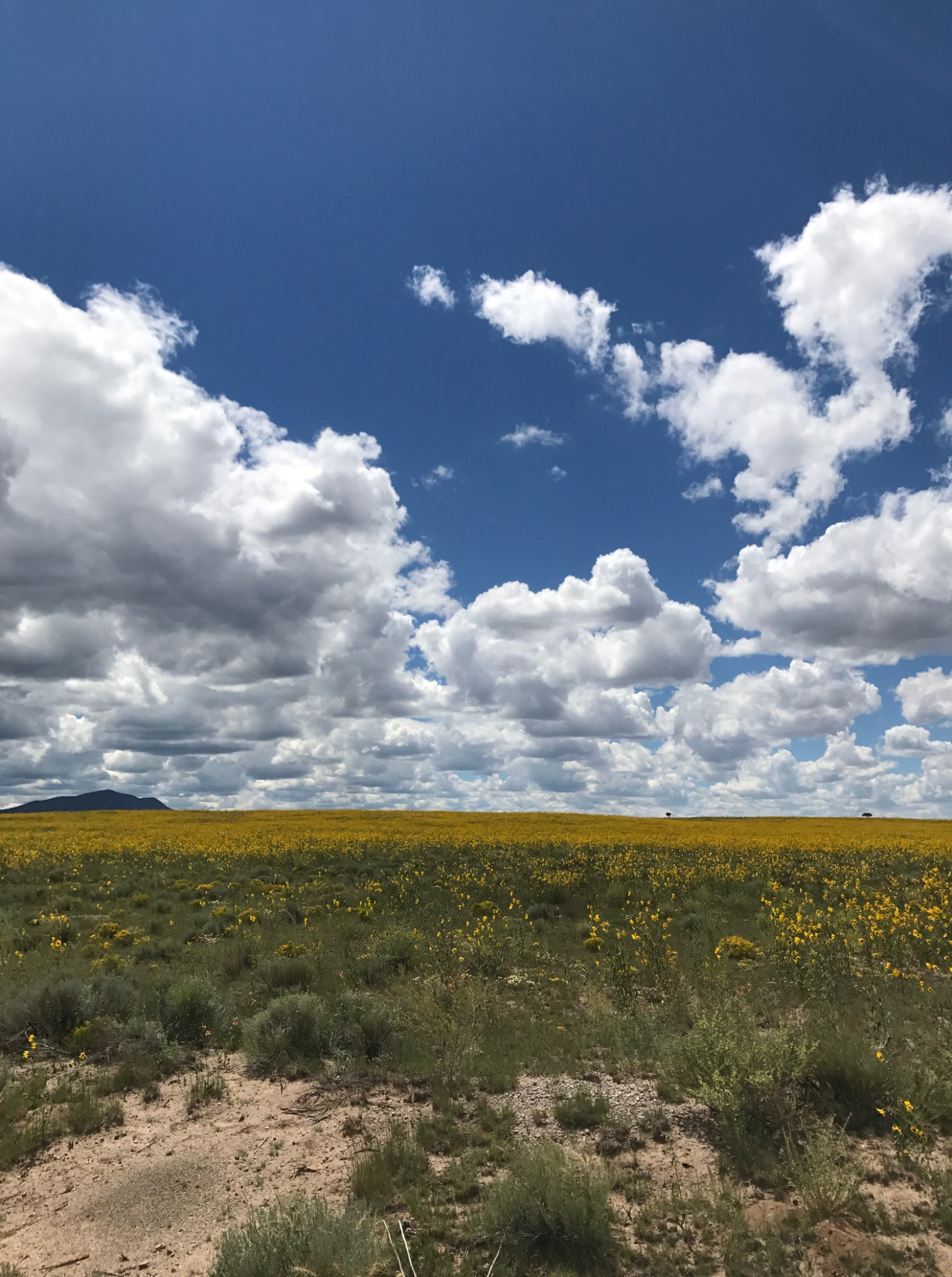 One day, I am standing on the lip of a crater to see the sun eclipsed by a black moon. I am surrounded by strangers gazing up with filtered lenses at an event once thought to portend the rise and fall of civilizations. I come away from the experience with an oversized t-shirt. But later that evening, while jaunting through dunes of alabaster sand, I see the same sun tip into the atmosphere, keeling into an indigo mist. Another day, another sun, lost somewhere in the land of the Navajo, I take a detour into a dusty road flanked by wildflowers blazed in brilliant light. I get out of my car and I wonder.