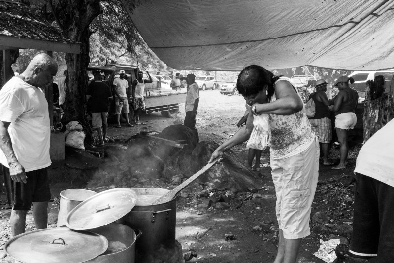 The “Goat Cook” is a way for Vincentians (people from the island of St. Vincent and the Grenadines) to commune with family and friends. Everyone from your 100-year-old grandmother to your 2-year-old niece grabs their bath suit and head into the water. Meanwhile, some uncle is telling lies about his athletic prowess as the younger version of himself runs up and down the beach trying to kick a ball through a makeshift goal made from two twigs. Drinks flow, soca music blasts, and the aroma of goat water (goat soup) wafts through the air. The entire scene is full of love, family, and joy.