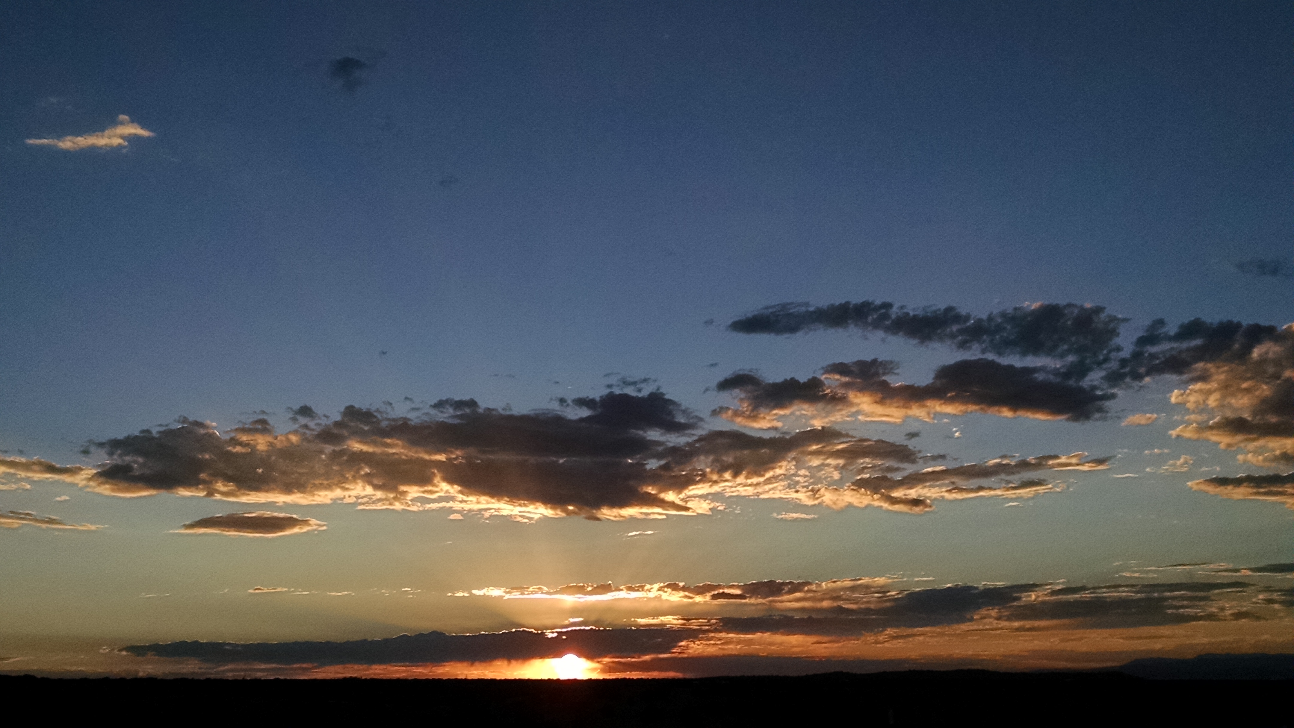 –The sunsets and sunrises continue to unveil beauty every day. Being human hurts, but if we live deliberately and look for beauty in nature and in other people, life is exhilarating and an adventure. Watching clouds is tremendously healing and calming.