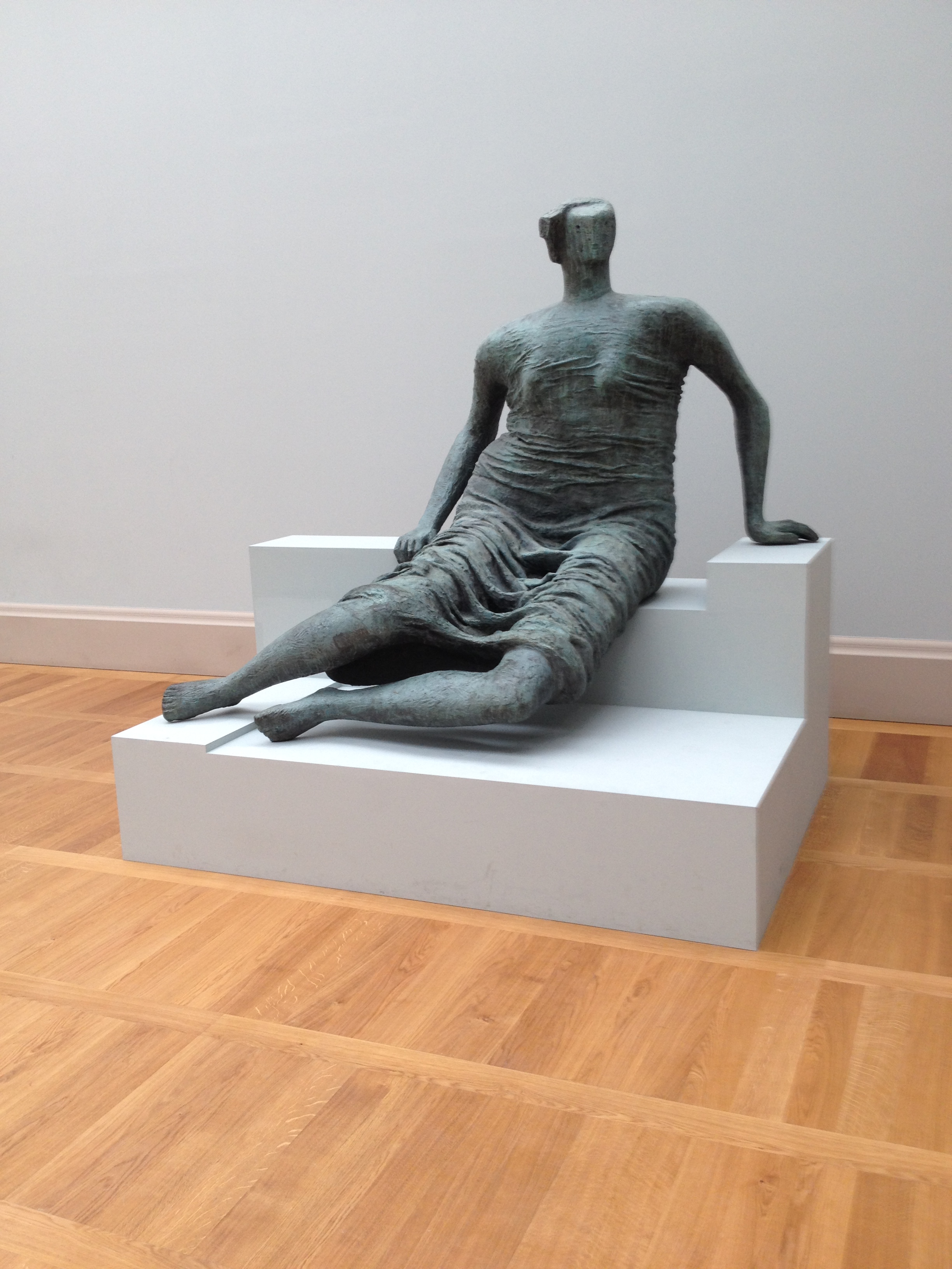 I hobbled around the galleries in a foul mood until I found myself in a roomful of Henry Moore sculptures. I knew Moore’s work from books and having seen some statues in New York, but here was a whole family of them, so to speak — and they were all mine. I wandered from one to the other, solitary and awed. Then I sat down near my favorite statue in the room, a reclining blue nude, and just admired its enigmatic beauty: