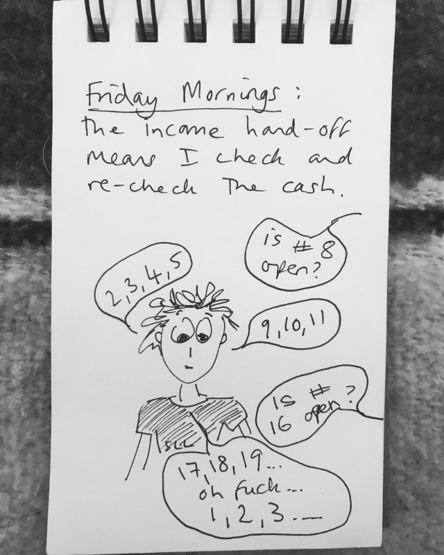 I’ve spent the last two summers as a campground host in Colorado. This year, I started to record my experiences in sketches. It became quite a project and turned into a booklet. It’ll answer most of your questions about how it is, what to expect, and maybe even make you a better camper (hehe).