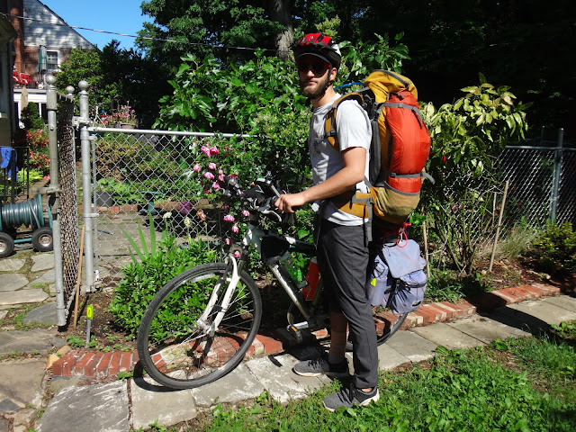 I wake up at eight and am ready by nine, after having one last meal of civilization (fried egg and cheese sandwich). I weigh myself and all my gear one last time: I’m 170 lbs.; gear is 30; food is 27. My departure is delayed as my parents insist on taking pictures and saying long farewells, but I manage to get on the road at 10. Frustration builds: people are blocking the sidewalk, in my way, and ignoring the sounds of me ringing my bell. When I finally reach the trailhead to begin on the C&O, it’s an unceremonious crossing.