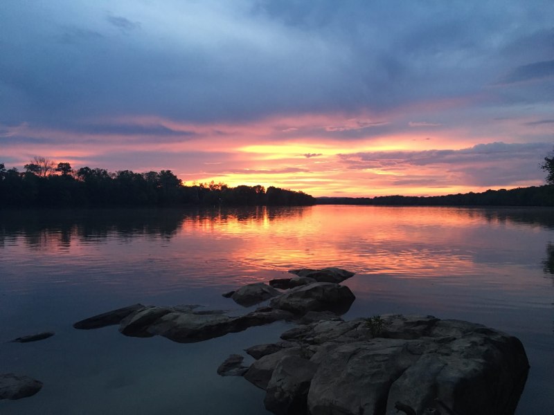 She says she took a dip in the river and found it quite refreshing, and I’ve got time to kill before dark, so I strip to my boxers and jump in — being extra vigilant, because the last time I was in the Potomac, on this trail, I got a black leech on my ankle. Afterwards I towel off with my shirt, just so I can drench it in the river and rinse my sweat off it.