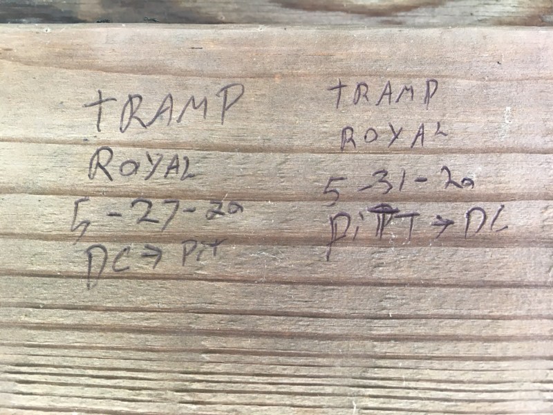 I tell my associate I’d take her up on the offer to share a fire, but she says she didn’t collect any firewood. Good thing I did. I bring mine over and we set it aflame. Around the fire we discuss the pandemic, and how now is a good time to isolate in the woods. She encourages me in my journey to Pittsburgh and back, and gives me her number, so I can let her know what the conditions are like, when she does the trip in a few weeks. With that, she wishes me happy trails and goes to bed.