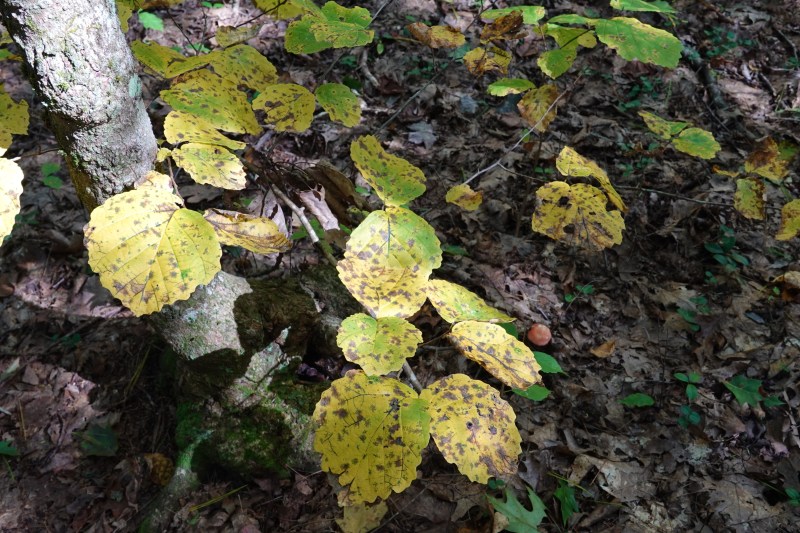 A small copse of Witch Hazel shrubs looks as if they are tumbling onto the path. It was a good year with lots of rain and sunshine, and the shrubs grew most where they had the room to stretch out their branches. I had been standing at this very spot a few years ago when three Chestnut-sided Warblers checked me out, all males sporting yellow crowns, black Zorro-type eye masks, and a warm-chestnut colored brush stroke on each flank. Their soft calls greeted me with the often transcribed pleased pleased pleased to MEET-cha.