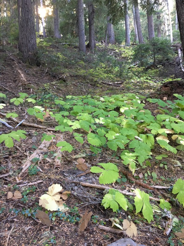 In late May, I return to a seep in Hoyt Arboretum where I know Vanilla Leaf grows. A young family passes me on the trail and I try to act nonchalant as I palm the plastic bag I’ve brought for specimens. When they’re gone I quickly pluck three leaves, a root and a flower. Trying to ignore my guilty conscience, I gently fold my loot into my pack. At home I hang my stolen goods on a cupboard knob next to my desk. As the leaves dry they remain a pale green and rattle in a breeze from the open window. They do not smell like vanilla. They do not smell like hay. Or clover. They smell sweet like themselves. Perhaps it was their buff colored death on a hillside in autumn that triggered that homelike exotic vanilla scent. Unless I can replicate the exact circumstances of the hike at Dog Lake I suppose I’ll never know for sure, but who knew that something dead could smell so sweet and also keep the bugs at bay.