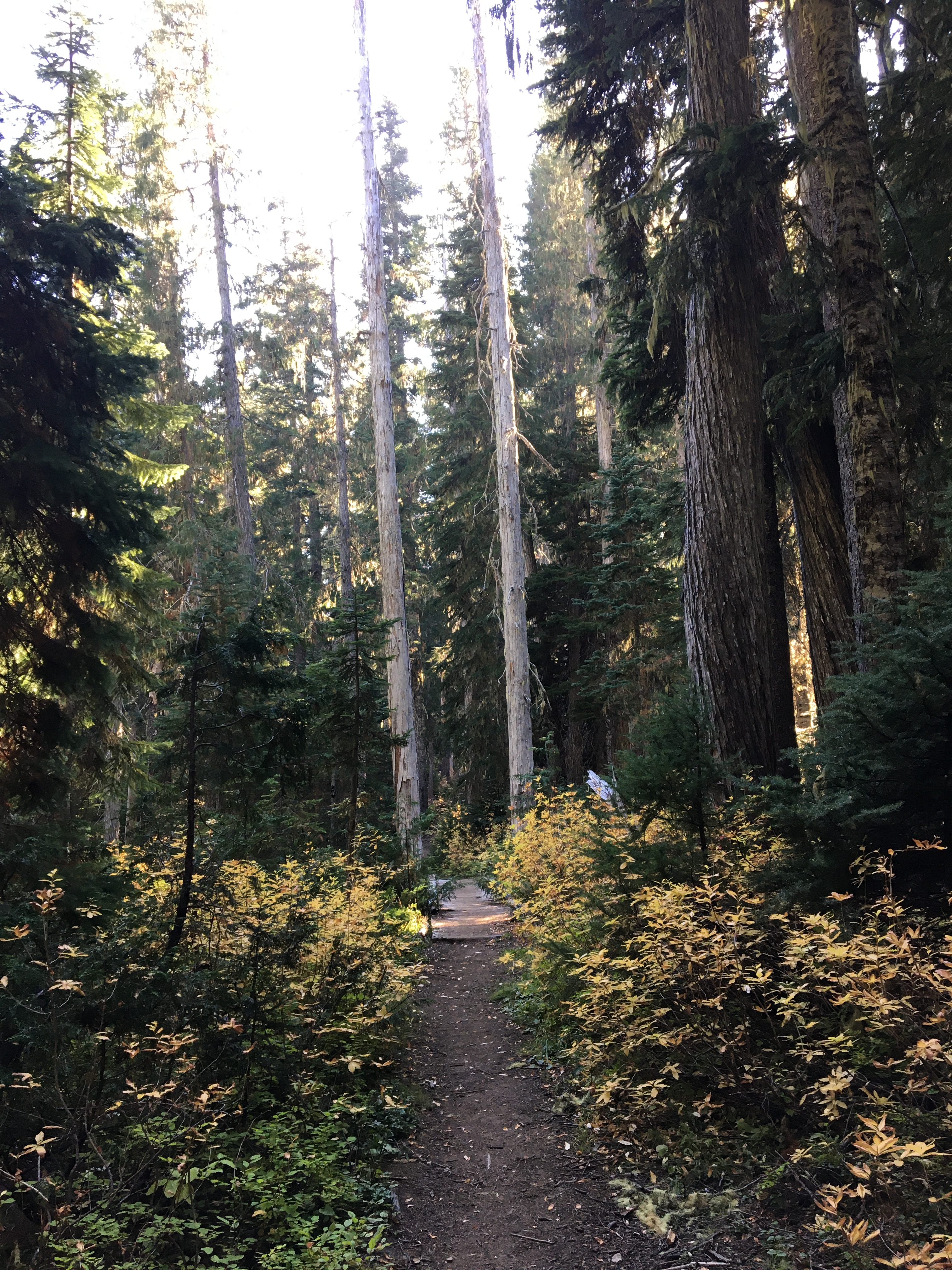 At Dog Lake just a few long curves past the pass, there is finally enough clarity to inhale. We take it easy on the path above the lake, breathing softly through the copper smoke holding the light hostage between patches of fir and cedar shadow. Dead needle char still tickles my throat when the first fugitive whiff of vanilla fingers my nose. I think, maybe, it’s on the lam from someone’s kitchen or maybe a vagrant tropical breeze. I ask H. if he can smell it, but all he gets is smoke. Intermittently, vanilla continues to whisper sweetly along the trail.
